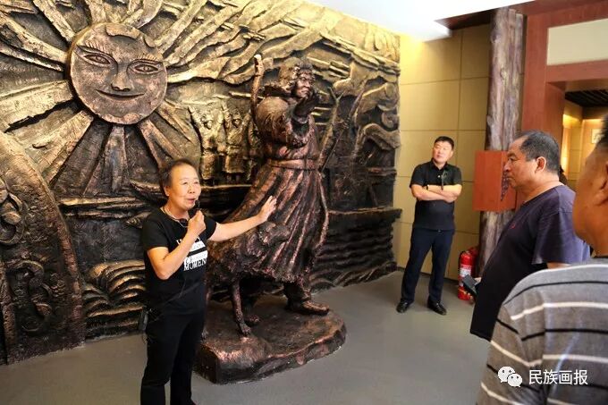 ❖尤秀云在赫哲民族文化村为游客们讲解赫哲族历史文化。游客一拨接着一拨,尤秀云是文化村的名人,很多游客是慕名而来听她讲解的。不仅因为她讲得生动,还因为她在2016年5月24日,习近平总书记参观同江市八岔乡八岔村赫哲族民俗馆时负责讲解工作。说起当时的场景,每一个细节尤秀云都记得很清晰。那天,尤秀云身着自己制作的鱼皮衣,讲解的这几分钟让她永生难忘。“为总书记讲解时,我一点也没紧张,因为总书记就像亲人一样。没想到总书记对鱼皮画那么感兴趣,从鱼皮画的制作到渔具的相关情况都具体询问,让我感到很自豪。”进入旅游旺季后尤秀云就没闲着,最多一天给8个旅游团讲解。虽然累,但能够传承赫哲文化,再忙再累她都觉得值。“我喜欢看到游客来这里了解我们的生活。现在展览馆的一套解说词都是我自己写的,也是我一点点挖掘出来的,我不喜欢照本宣科,讲解时,我还把自己的生活经验都加入到解说词中。能够在这里向游客传播民族文化,我感到很幸福。”伊玛堪是东北地区赫哲族的独特说唱艺术。作为伊玛堪的省级传承人,尤秀云更是时时激励自己, “让伊玛堪能延续下去,把民族文化传承好,是我们这一代人的责任。”尤秀云说,她一共收了21位学生,最大的50岁,最小的8岁。每个星期,她都到同江市里的传习所给学生们上课,教唱伊玛堪。传习所把尤秀云和喜爱赫哲族传统艺术的年轻人连结到了一起,濒临失传的伊玛堪说唱在同江市开始重新活跃起来。