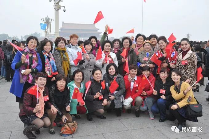 ❖参加全国妇女代表大会期间与各民族妇女代表在天安门广场合影。